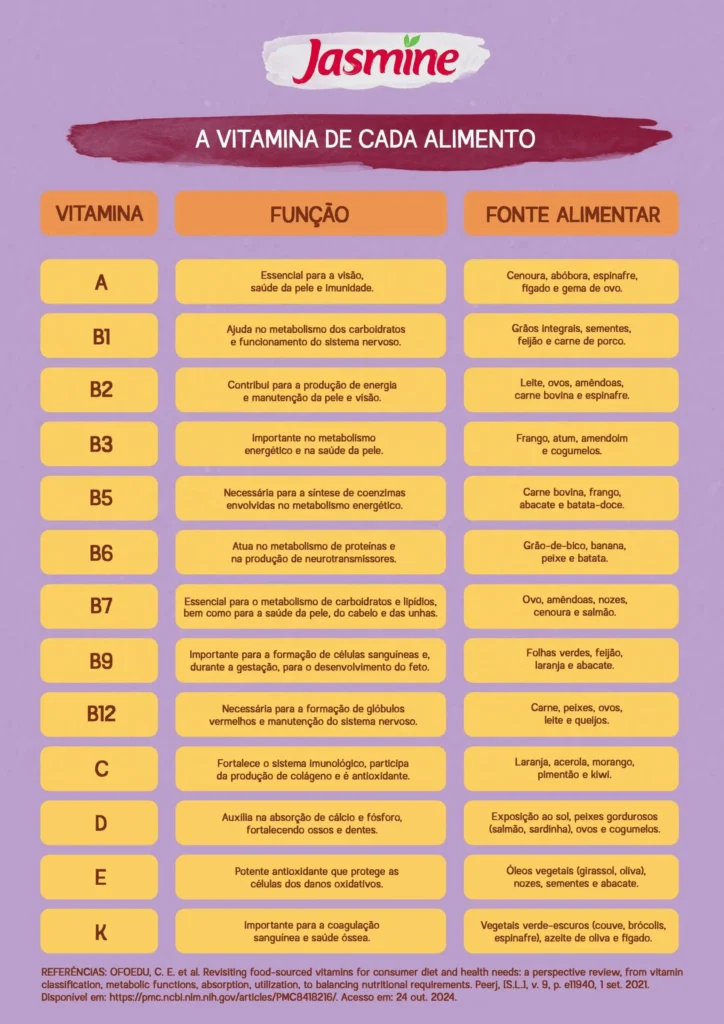 OFOEDU, C. E. et al. Revisiting food-sourced vitamins for consumer diet and health needs: a perspective review, from vitamin classification, metabolic functions, absorption, utilization, to balancing nutritional requirements. Peerj, [S.L.], v. 9, p. e11940, 1 set. 2021. Disponível em: https://pmc.ncbi.nlm.nih.gov/articles/PMC8418216/. Acesso em: 24 out. 2024.