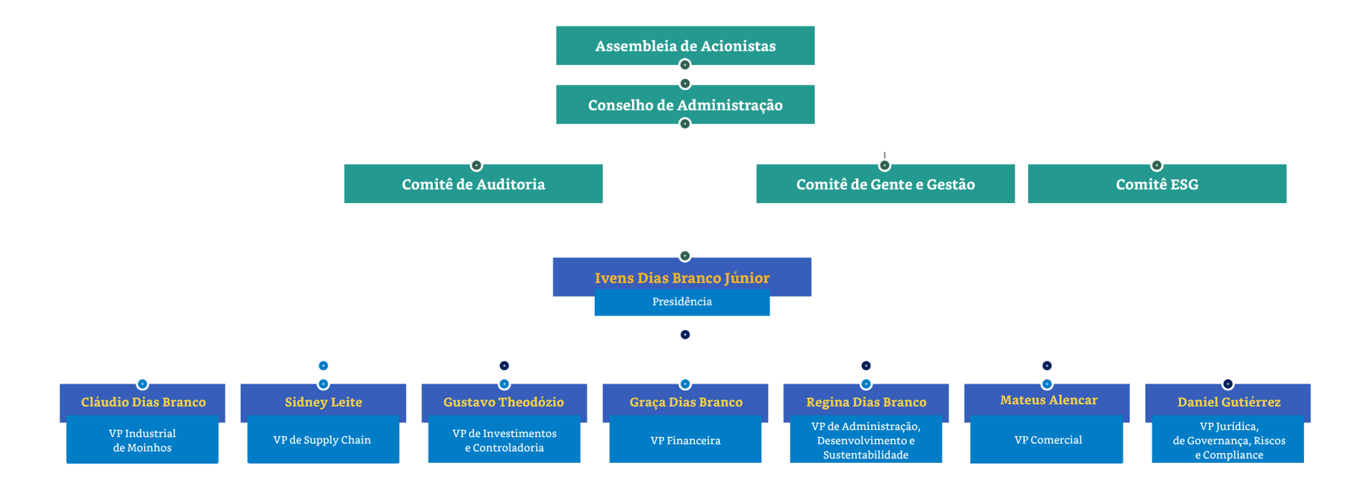 O organograma da M. Dias Branco é publicado anualmente no Relatório Anual Integrado.