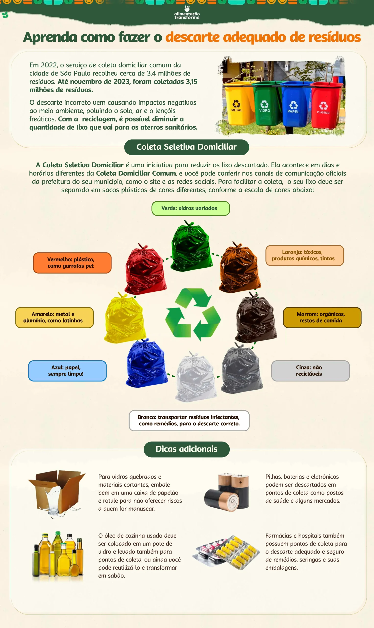 Infográfico: “Aprenda como fazer o descarte adequado de resíduos”
